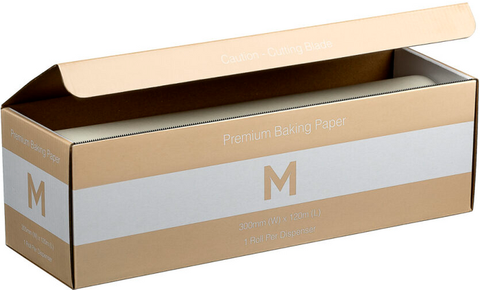 Baking paper provides a healthy choice for baking by reducing the need for greasing pans and trays. Paper is non-stick siliconised on both sides and can be used in both microwaves and thermal ovens. Complete with built-in cutter on edge of box and available in two width sizes.