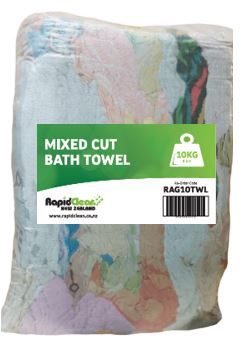 Pomona mixed-colour cut bath towel rags are highly absorbent and durable, making them ideal for a variety of cleaning tasks. Used in a range of industries.