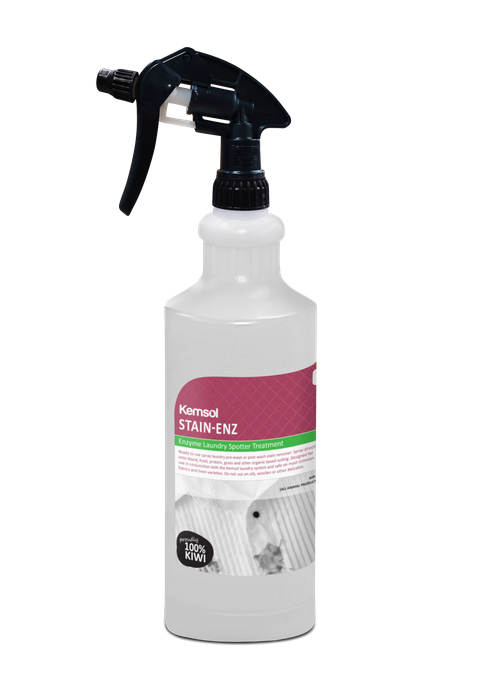 STAIN-ENZ is a ready-to-use laundry prewash spray or postwash stain remover. Spray directly onto blood, food, protein, grass and other organic based soiling.