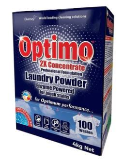 Optimo 2X Concentrate and Professional Formulation Laundry Powder is an enzyme boosted detergent with fresh fragrance, giving