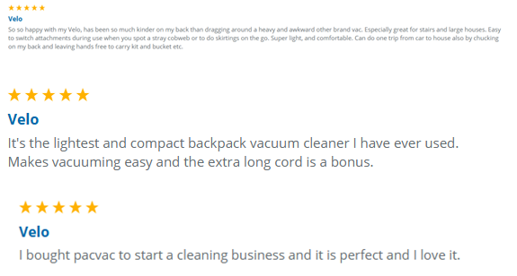 - PACVAC VELO BACKPACK VACUUM CLEANER