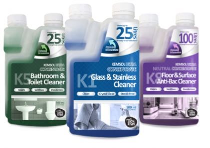 Everything you need in one box to get the cleaning started. Three ultra concentrated cleaning products, packed in a portable dosing system to ensure low cost in use and compliance. When considering the purchase of concentrates, we automatically think of cost savings. This is definitely a key benefit, but you will also be making a real contribution to environmental care – something we are all passionate about. When using Kemsol Ultra, the material costs, waste and environmental impact are significantly reduced, easier storage and handling improves Health and Safety, less water and energy is required in the manufacturing process and carbon footprint, freight and storage costs are reduced.