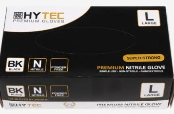 HYTEC BLACK NITRILE POWDER FREE GLOVES - LARGE