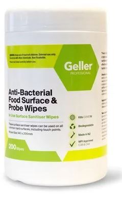 - GELLER PROFESSIONAL ANTIBAC FOOD SURFACE AND PROBE WIPES - 200'S