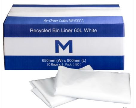 - RECYCLED BIN LINER WHITE - 60L - 50/PACK