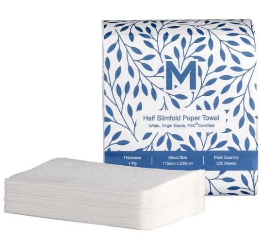 Available in a 1 ply 200 sheet pack with an 1/3 fold sheet size of 115mm x 230mm.