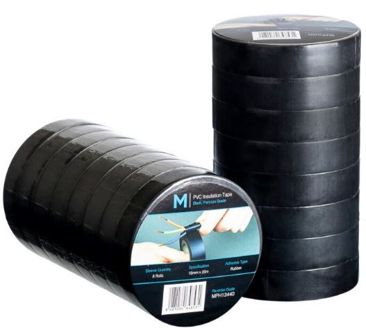 - PVC ELECTRICAL INSULATION TAPE - BLACK - 8 ROLLS PER SLEEVE